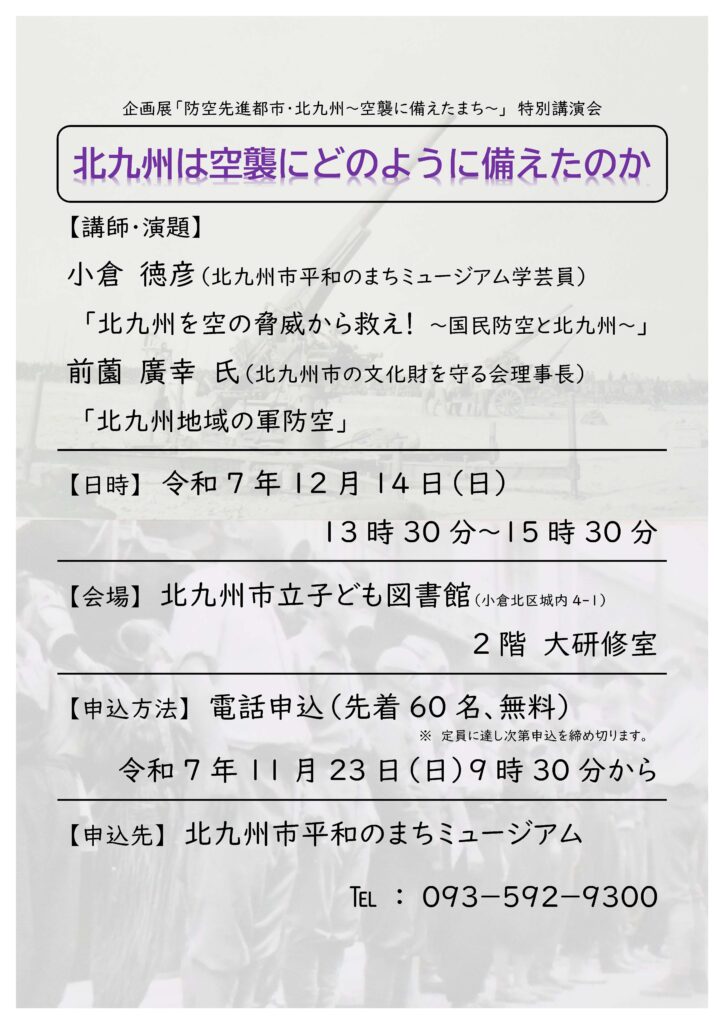 特別講演会「北九州は空襲にどのように備えたのか」開催のお知らせ