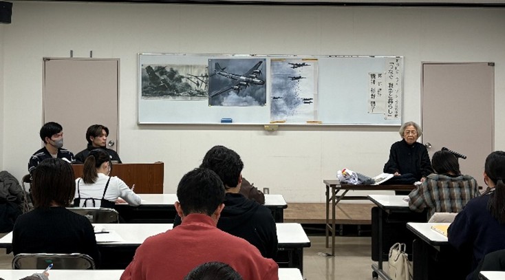 杉野さんの穏やかな語り口の中にある生の体験に引き込まれ、あっという間に時間が過ぎていきました。戦争が「日常」だったという事実や価値観の違いに驚きながら、今私たちが過ごしている平和のありがたさを改めて感じました。この平和を未来へつないでいくために、私たち若い世代が体験や想いを伝えていきたいと思います