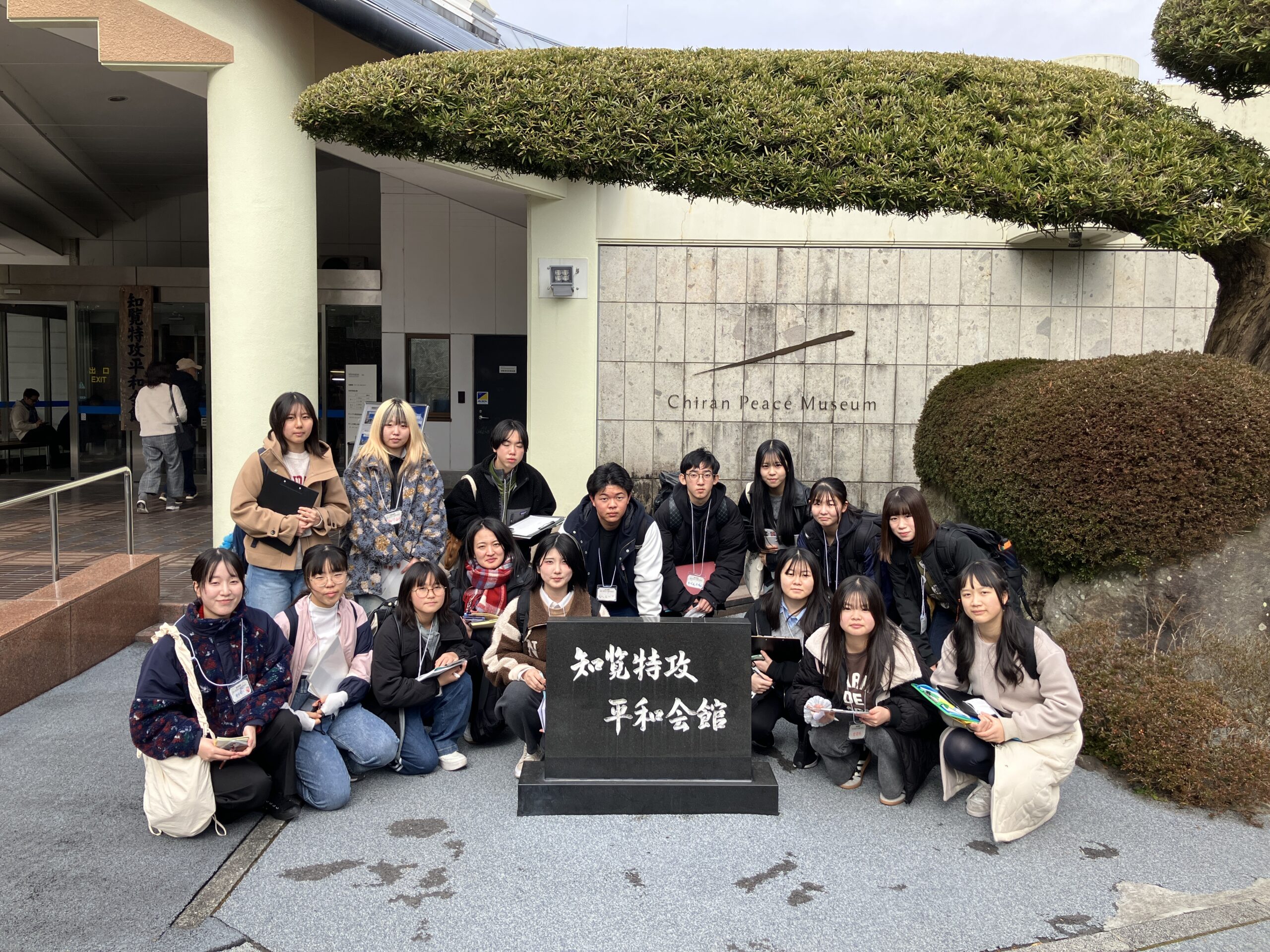 ピースフィールドクラブのメンバー16名が、1月31日(土) - 2月1日(日)、一泊二日の行程で交流協定を締結する南九州市(平和関連施設等)へ訪問し、知覧特攻平和会館の見学・講和の聴講、『劇団いぶき』さんとの交流、ホタル館富屋食堂の見学 等様々なプログラムをこなしました!